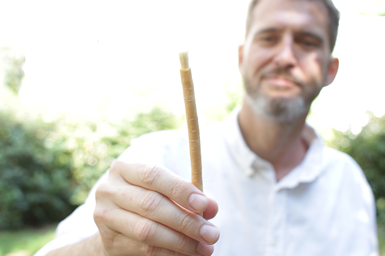Spălați Siwak cu apă după ce ați scos din ambalajul în vid. Din partea îngustă a bastonului, îndepărtați coaja superioară de aproximativ lățimea degetului mic. Mestecați încet, ferm, dar ușor tărâțele de pe scaunele până când se formează o perie. Dacă fibrele se rup prea mult, mușcăți prea mult.